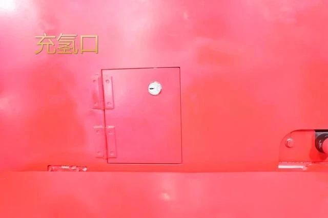但從側(cè)面來看,原本油箱的位置變成了一個完全密封的儲氣箱,車身側(cè)邊還有一個氣壓表,而且在車身顯著位置標(biāo)注:“ZERO EMISSION H2O”字樣,這一點與柴油車有明顯區(qū)別。